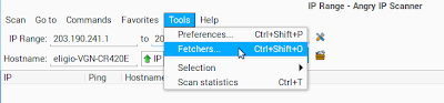 Ezemplu Hili Opsaun Iha Janela Select Fetchers - Kontinua fali hodi hatama range IP no klik ba butaun Start. Karik prosesu scanning remata, Angry IP Scanner sei fo resultadu konaba port servidor web ne’ebe ativu.