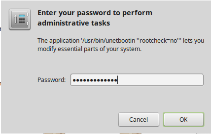 6. Kuandu susesu hatama password sistema Linux, sei mosu janela aplikasaun UNetbootin hanesan ezemplu ilustrasaun tuir mai ne’e: